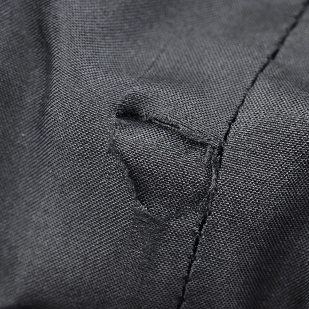 The cleaning tag is stapled to the washing label. Surface: Pilling