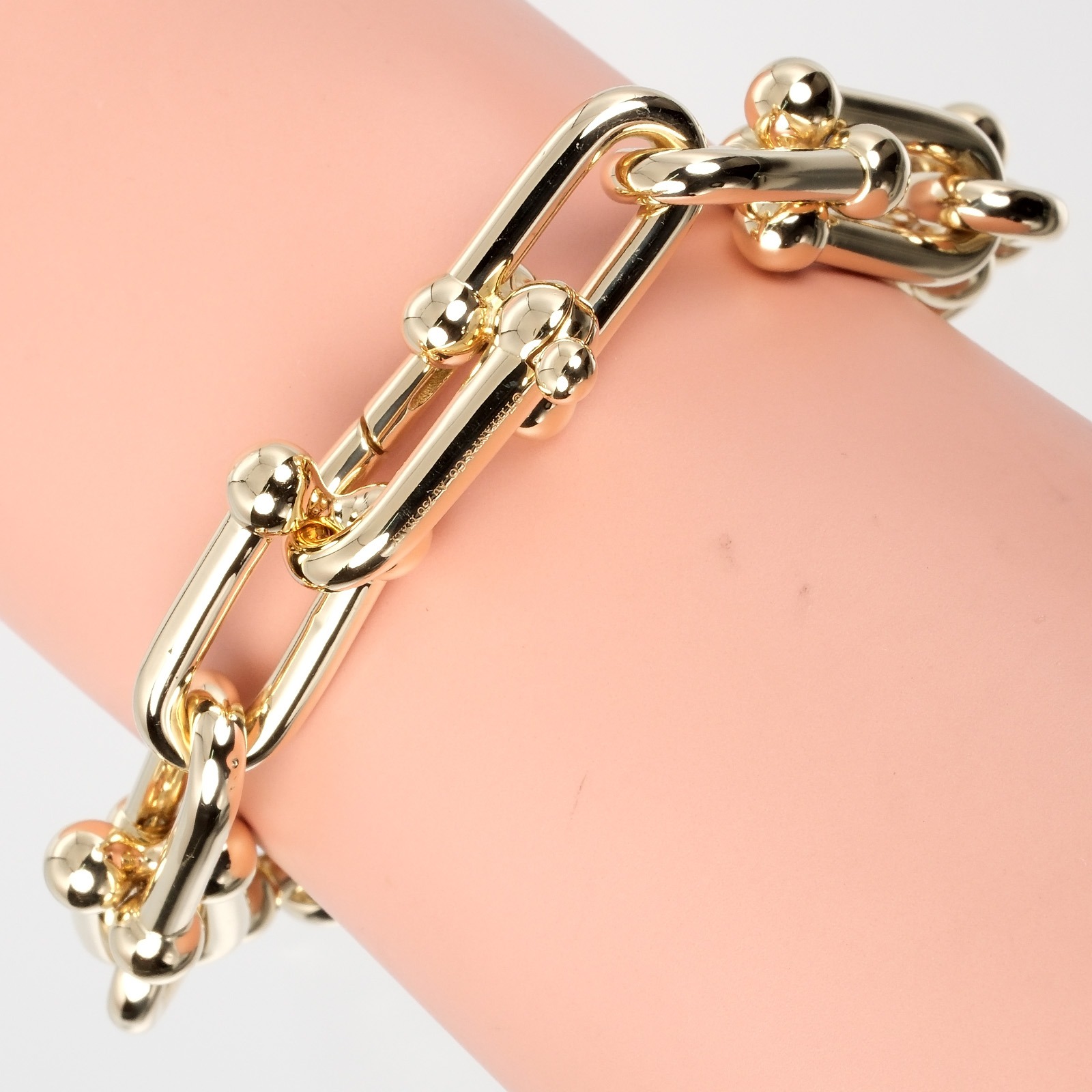 ・腕周り約18.5cm ・リンクのサイズ:約22mm×12.4mm ・ティファニーにて、長さ調整を受けたため(リンクの追加)、末端のリンクは半セットになっています。 ・1リンクを除いた腕周りは約17cmのため、オリジナルサイズはLに当てはまります。 ・数箇所の深い当て傷があります。商品画像でご確認ください。