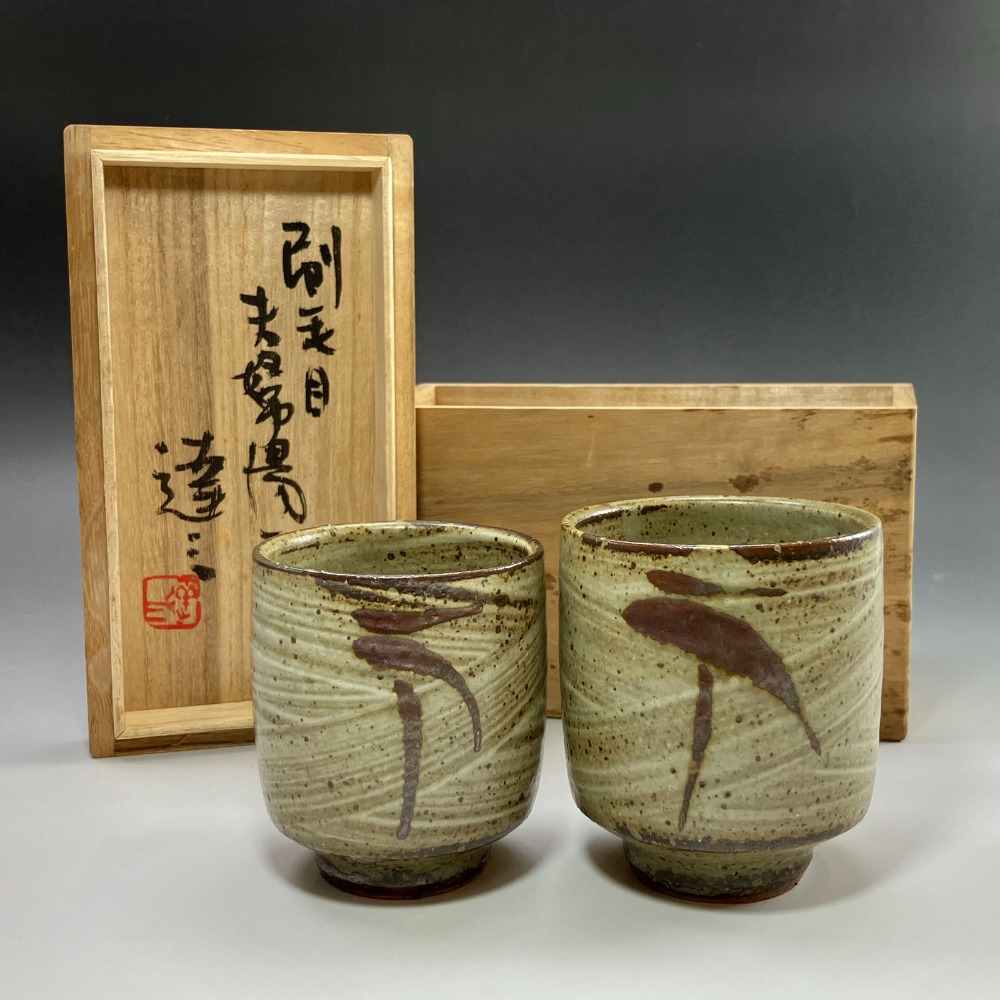 人間国宝 島岡達三 造 刷毛目夫婦湯呑 食器