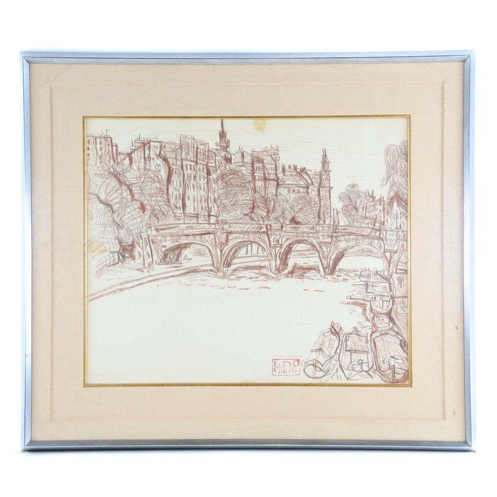 作家:西山 英雄 題名:セーヌの流 技法:クレヨン画 サイン:直筆サイン 落款 作品の寸法:36.0×43.5cm 額縁の外寸法:54.0×61.5cm 《状態》 ・全体的に黄ばみがございます。 ・汚れやシミは数箇所がございます、画像を参照してください。
