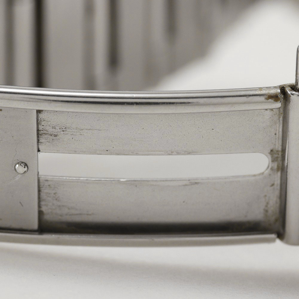ガラスに油膜汚れがございます。本体ケース:小キズ、サイドにキズ、裏蓋部分に微細キズ