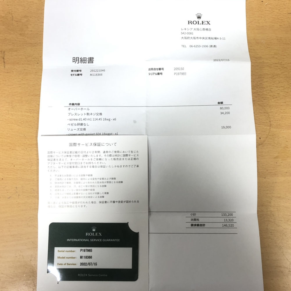 2022/07/15ロレックス社にてオーバーホール済み