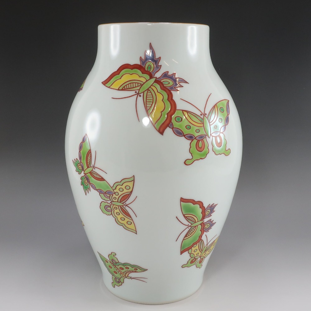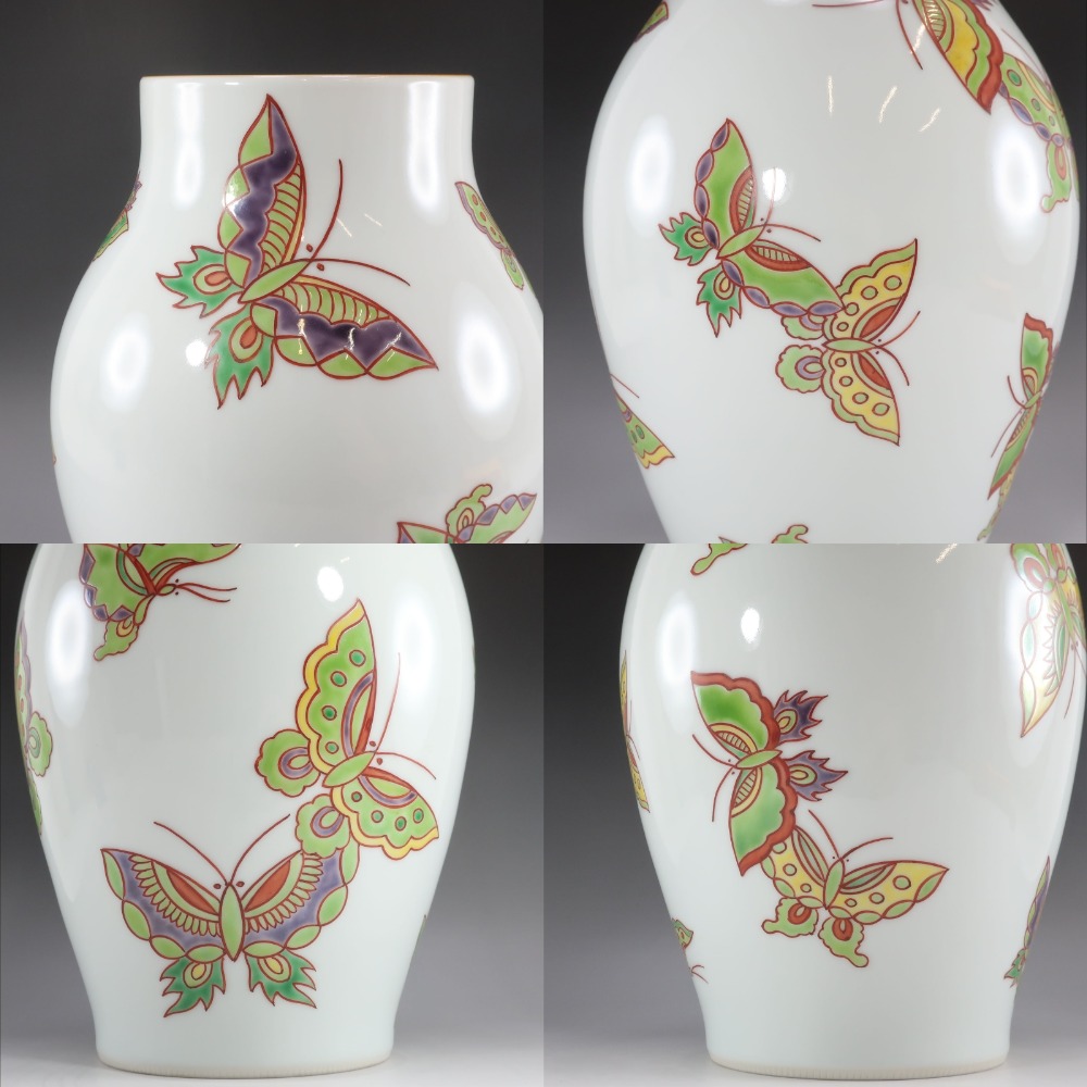 [モデル名] 五世 三浦竹泉 色絵遊蝶文花瓶
