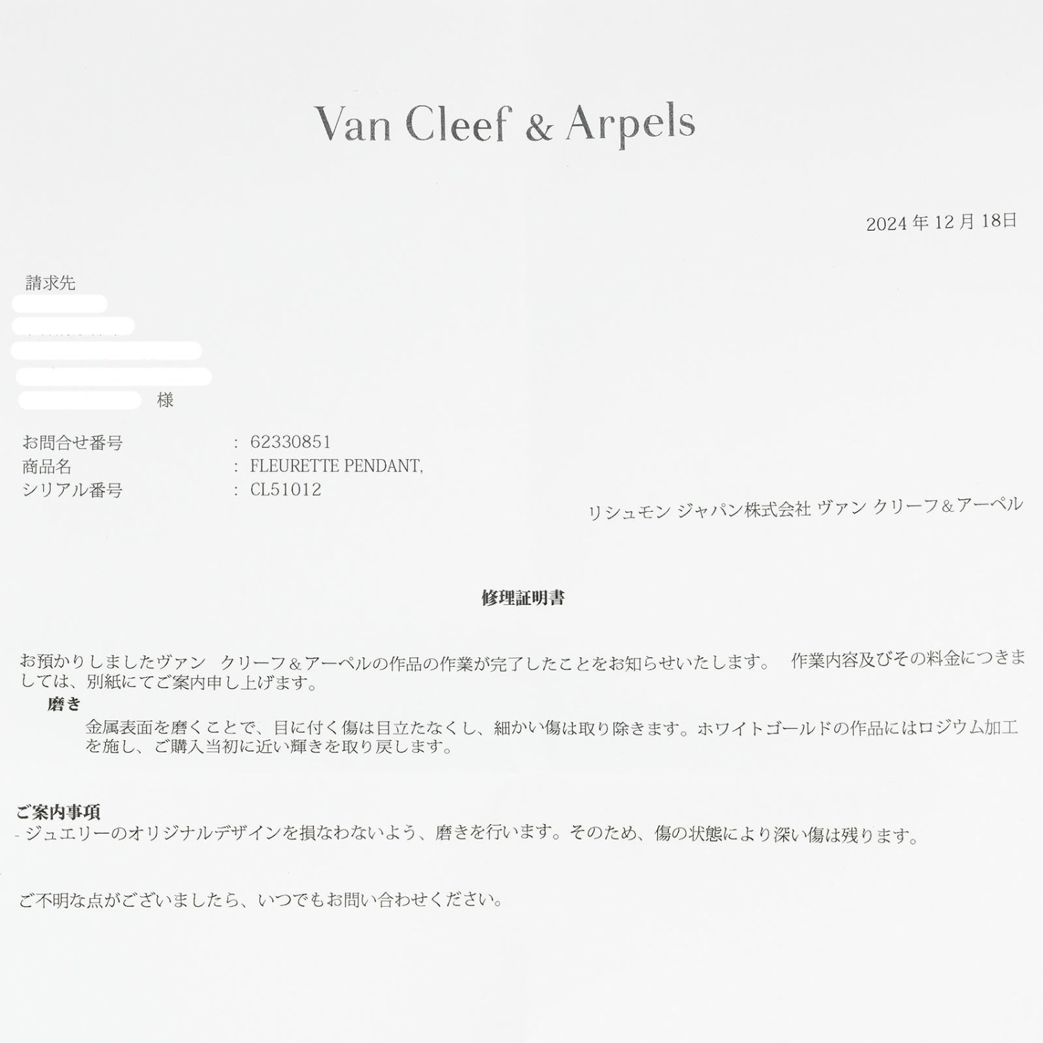 保存箱、外箱、修理証明書、購入証明書